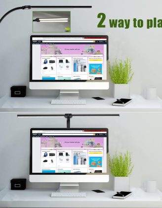 • Sale! Double Head LED Desk Lamp, Architect Desk Lamps for Home Office, 24W Brightest Workbench Office Lighting-5 Color Modes and 5 Dimmable Eye Protection Modern Desk Lamp for Monitor Reading