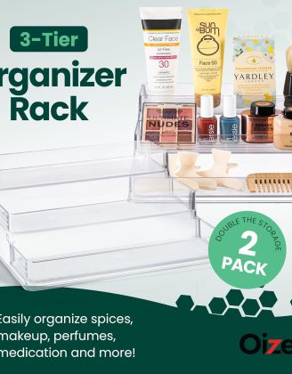 • Oizeir Clear Spice Rack (2-Pack) – 3-Tier Acrylic Organizer for Cabinet – Deep Spice Shelf – 10.4 x 9.6 x 4 Inches – Holds Seasoning and Condiments